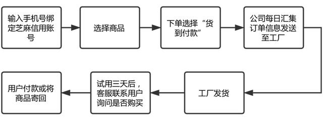 平台的使用流程如下图所示。如果用户芝麻信用分超过650分,可以先试用后购买,商品往返运费由公司承担。