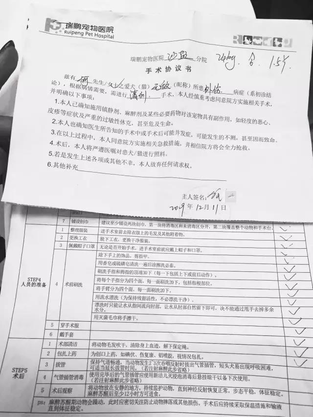 详见2019年12月16日深圳客户端深圳新闻网。近日,何女士向深圳新闻网每日3.15栏目爆料。深圳瑞鹏宠物医院给狗狗做麻醉缝合治疗时,狗狗因操作不当死亡。何女士质疑医院擅自操作,聘用无证麻醉师,造成宠物医疗事故,要求退还治疗费用,赔偿犬只价值及饲养费用。
