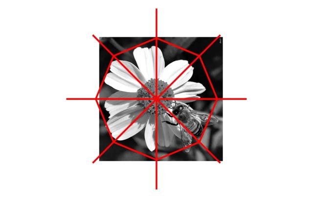 我们来分析一下,雏菊有八片花瓣,蜜蜂的翅膀和身体占了三片。为了简单起见,我们可以折衷一下,取六片花瓣。