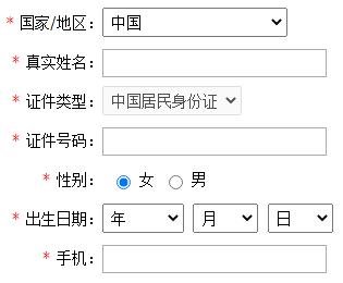 如实填写个人基本信息:国家/地区、真实姓名、证件类型、证件号码、性别、出生日期、手机号码。