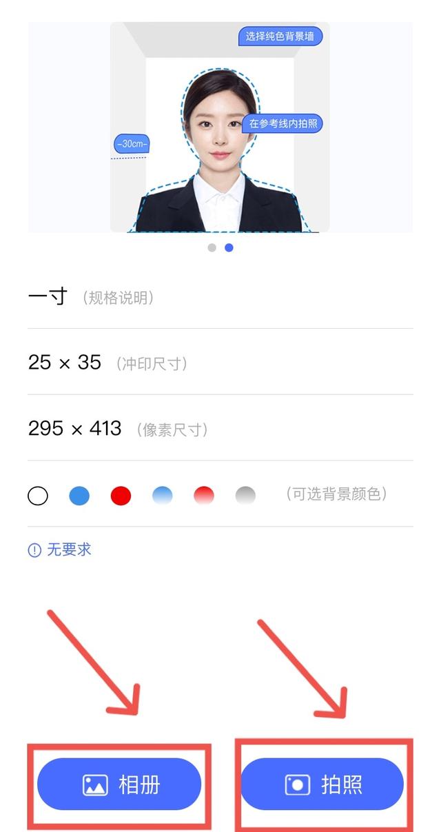 如果使用[相册],直接从相册导入图片。如果用【照片】的话,站在白墙前拍。系统会根据你的头像进行口头提醒。