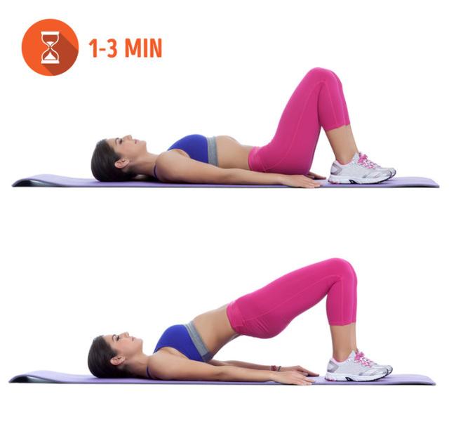 2.弯曲膝盖,双脚尽量靠近臀部。