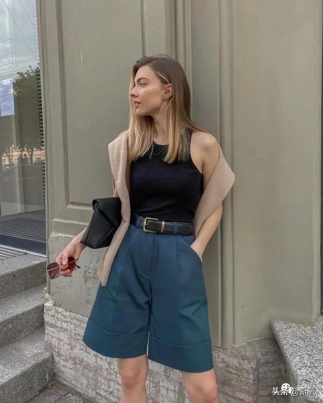 里面穿衬衫也可以换成抹胸吊带,可以搭配西装外套和阔腿裤,露出皮肤但不过分妩媚。