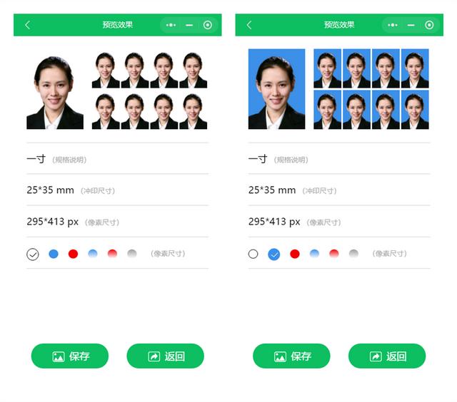 选择页面证件照的大小,标准的一寸两寸简历和日常生活都可以,然后点击背景色更改,只需点击保存即可。直接保存在桌面上。