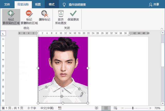 抠图:保存手机拍摄的照片发送到电脑,然后点击图片全选进入[格式],删除杂乱的背景,选择[待保留区域]。