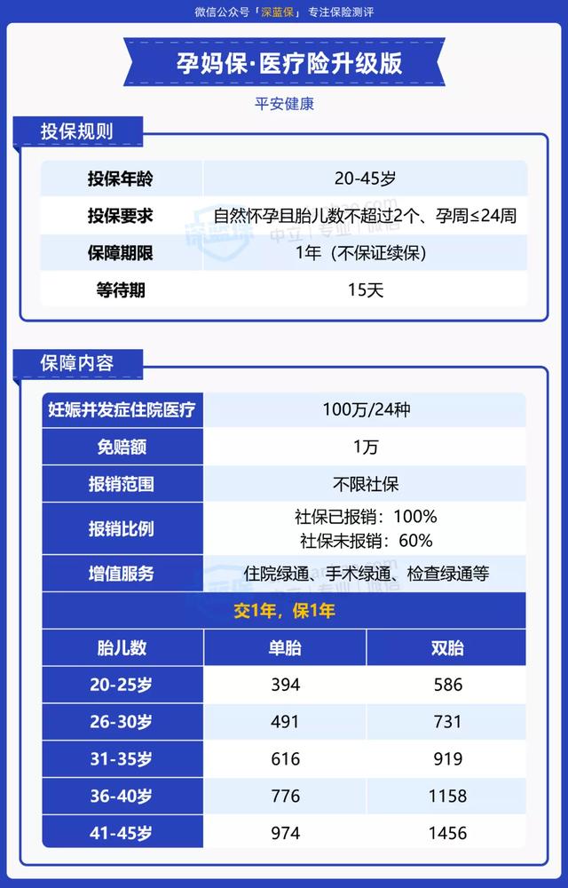 但是这款产品没有孕龄限制,也没有胎数限制。只要符合健康须知就可以买,而且价格很便宜,一年只要90块。如果预算不大,买这款还是很划算的。