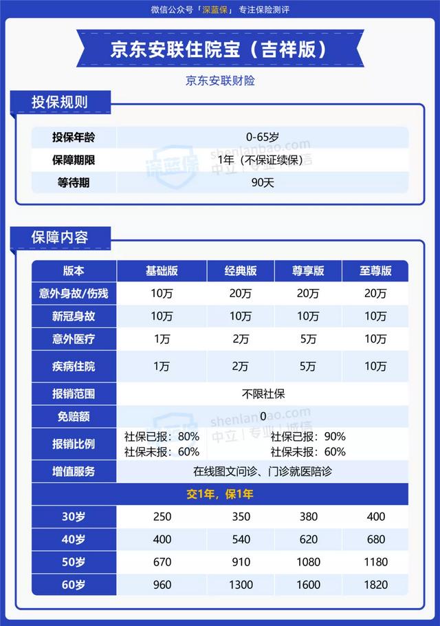 JD.COM安联住院宝(吉祥版)是安联财险新推出的一款小额医疗保险。65岁可以买,投保年龄相对宽松。