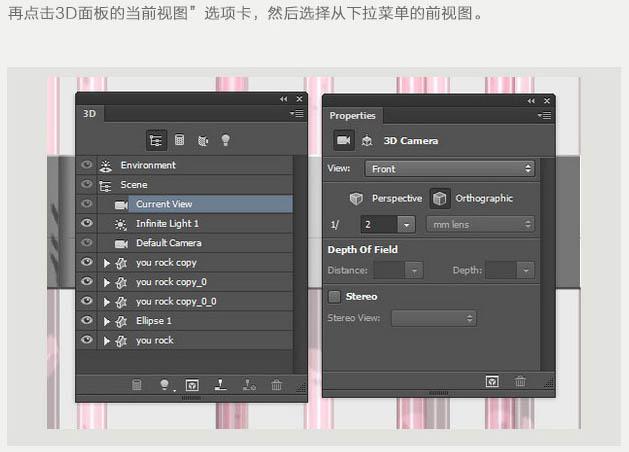 20.再次单击3D面板的“当前视图”选项卡,然后从下拉菜单中选择前视图。
