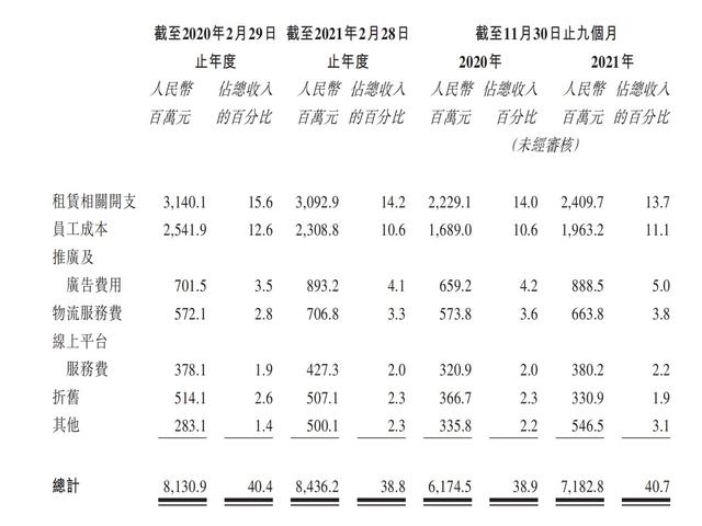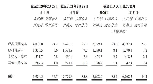 百丽时尚一年的销售和生产成本高达162亿元,占营收近75%。截至2021年2月28日的财年,百丽时尚的销售和营销支出总计84.4亿元。采购和生产产成品及原材料的成本合计为77.8亿元,而同期经营活动产生的现金净额为44.3亿元,远小于采购和生产的成本。