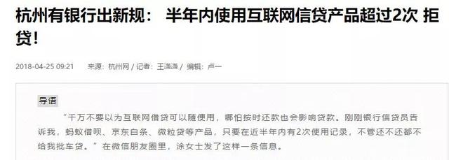 但是!近日,杭行发布贷款新政,“只要半年内有两次使用互联网借款的记录,如蚂蚁借条白、借条等,即使已经还清也不会放款。"