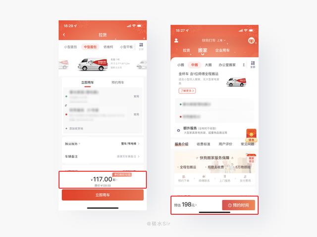 设计方案:拉货和搬家都提供搬运服务,都有搬运价格明细。需要拉货的用户不一定需要两边扛。在这里,他们可以选择单方面携带或全程携带。对于搬家,如果选择搬家服务,默认要全程搬运,价格明细只是总数。根据需要选择。