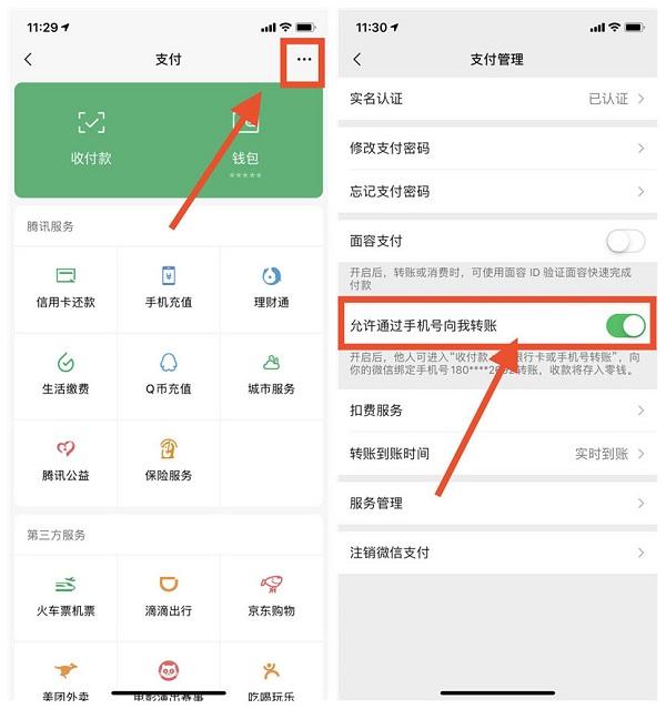 (6)打开方法也很简单,在& # 34;付款& # 34;界面,右上角& # 34;…& # 34;,打开& # 34;允许我通过手机号码转账& # 34;这个功能就可以了。