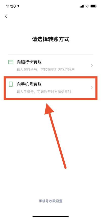 (4)然后点击& # 34;向手机号码转账& # 34;这种选择。输入对方手机号码进行转账。