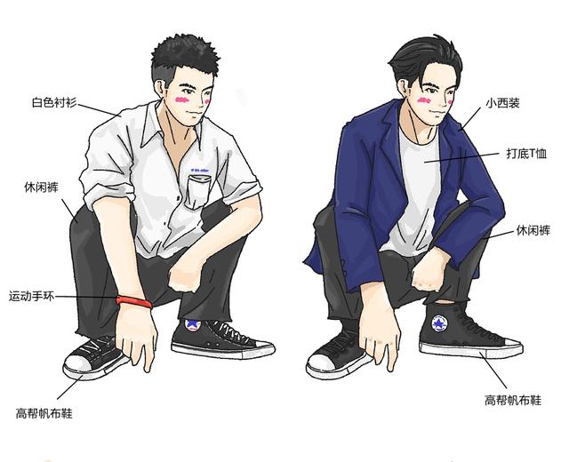 当一个男生穿上白衬衫的时候,总觉得自己像个少年,很年轻。黑色休闲裤搭配白色衬衫,打造经典黑白搭配。高帮帆布鞋是小哥哥小姐姐们的最爱,展现出清新的文艺风。