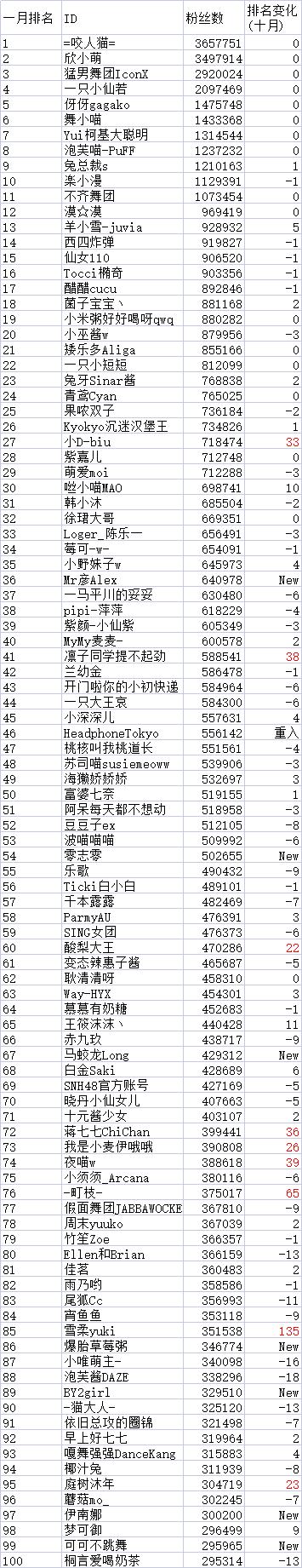 我把我在哔哩哔哩舞蹈看到的粉丝数爬上来,按粉丝数排序,做了一个数据表。