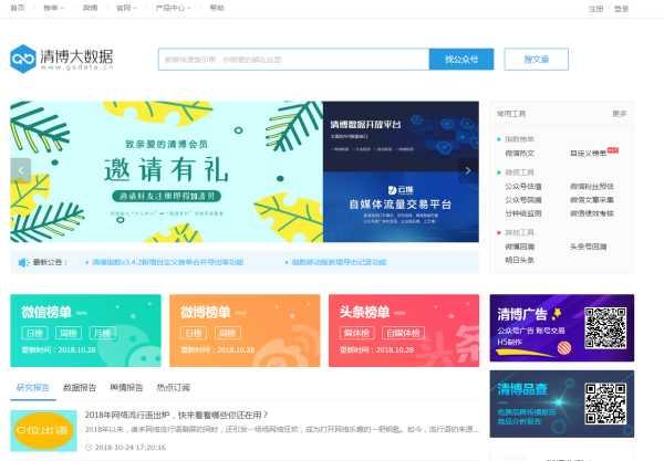 清博大数据是中国新媒体大数据的权威平台,拥有清博指数、清博舆情、映光公共品等多个核心产品。提供微信、微博、头条号等新媒体排名、广告交易、舆情报告、数据咨询等服务。