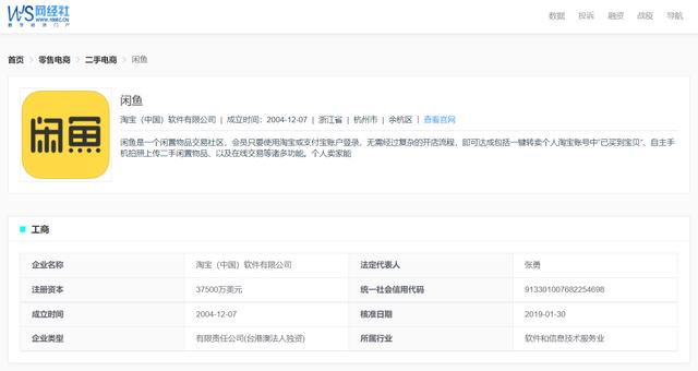 从互联网经济社会服务企业行(COP.100EC.CN)了解到,闲鱼隶属于淘宝(中国)软件有限公司,成立于2004年12月7日,法定代表人为张勇。闲鱼自称是一个闲置物品交易社区。会员只要用淘宝或支付宝账号登录,就可以一键转卖个人淘宝账号里的“买的宝”,用自己的手机拍照上传二手闲置商品,而且
