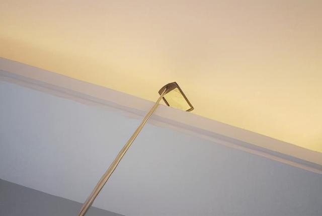 对于购房者来说,开发商精装过程中的隐蔽工程检查难度较大,但对于资深验房师来说却是验房的重点。在检查客厅吊顶时,家检员先打开灯带,目测后,根据光线均匀的状态,初步判定吊顶灯槽内的腻子粉有明显污染。没有处理好,然后家检员拿出一面手柄长度和方向可调的小镜子,举到天花板上方,检查天花板上方的内部结构。验房师发现客厅的吸顶灯槽灯光不均匀。