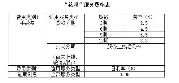 花呗分3、6、9、12四个阶段,对应的手续费分别为2.5%、4.5%、6.5%、8.8%。