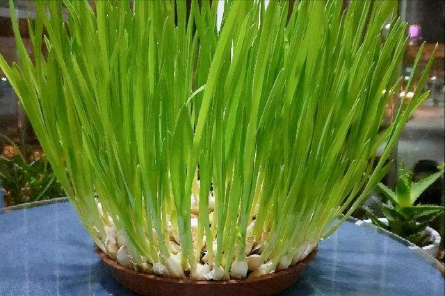秋天降温后,房间里的大蒜开始发芽,有暖气的房间大蒜发芽更多。已经开始发芽的大蒜,放在潮湿的细沙或有一层浅水的盘子里,会迅速生长,10天左右就能长到15厘米以上。可以分几次掐掉叶子吃,也可以春节的时候拉出来吃。