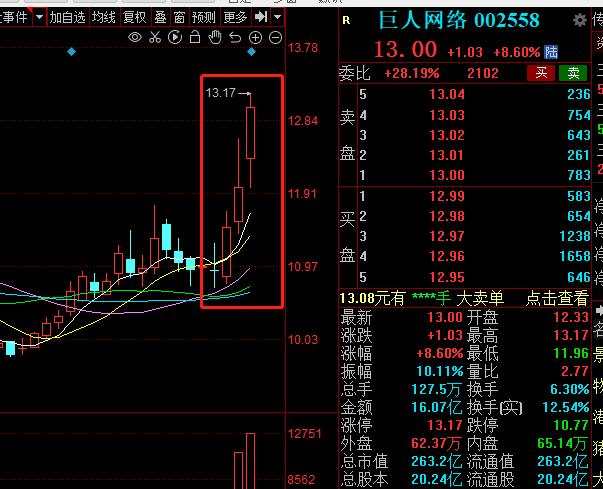 截至收盘,巨人网络以13元收盘,上涨8.60%,总市值263亿元。这样的场景,巨人网络的股东们从2017年开始就几乎没见过了。
