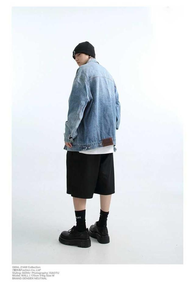 这款牛仔外套也很适合叠穿。材质厚实,适合深秋穿着。