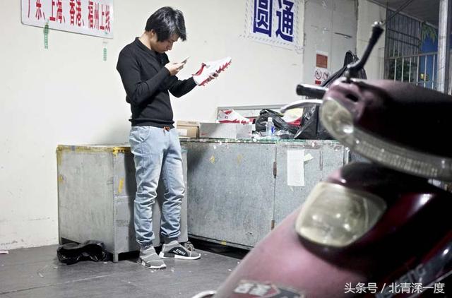 电商的另一边,是快递的天下。几乎知名的快递公司都能找到。大部分快递员都在忙着填单发货,打包胶带的声音很大。在包装的那一刻,你可以清楚地看到他们手中的鞋盒,要么是耐克,要么是阿迪达斯,要么是新百伦。