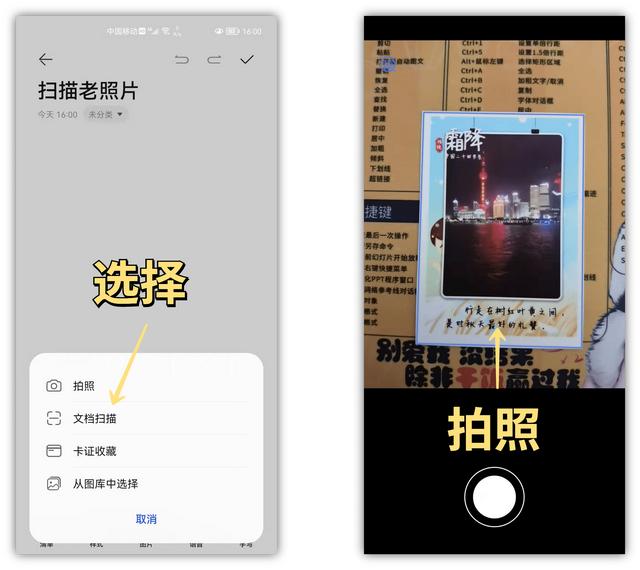 3.支持拍照后查看和编辑。如果照片多,可以连续拍照。然后点击右下角的“保存”按钮,家里的旧照片就会扫描到备忘录里,非常清晰!