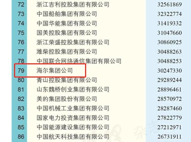 其中,海尔集团以3024.7亿元的营收排名第79位,位列家电行业第一。