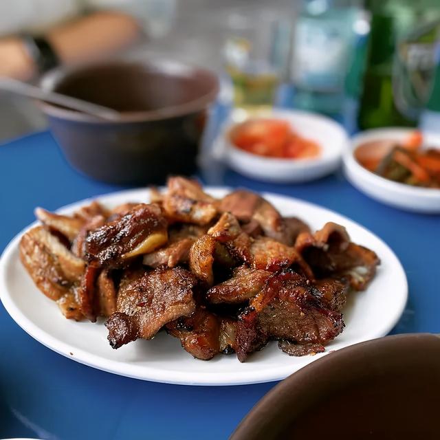 这家烤肉店在东大门真的很有名气,上过很多美食综艺节目!最有特色的菜是他的炭火烤猪排!