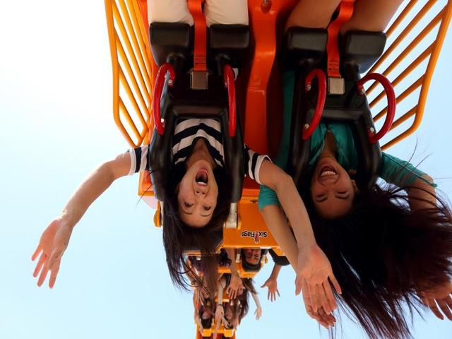 在加州布埃纳公园的诺特浆果农场公园,加州第一个也是唯一一个潜水过山车开启了一个新的颠倒时刻。倒立,先爬到150英尺in 空的高度,再从另一边掉下去。因为是96度的落差,钢制过山车给人一种错觉,就像轨道是从车下钻出来的一样。螺旋倒档和半[/k0/]悬挂增加了这种高速骑行的刺激感。