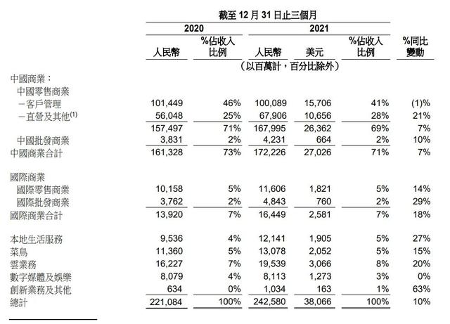 财报显示,2021Q4阿里总营收达2425.8亿元,同比增长10%。