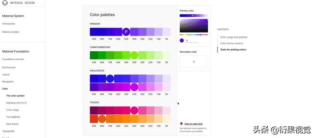 材料设计调色板
