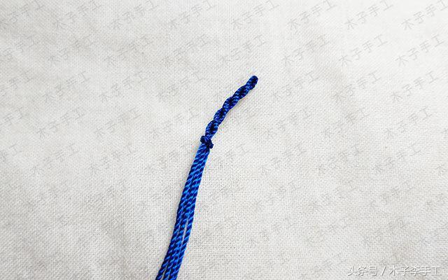 2.然后编个四股辫,用蛇结固定。四股辫加捻绳的长度是手周长的一半。