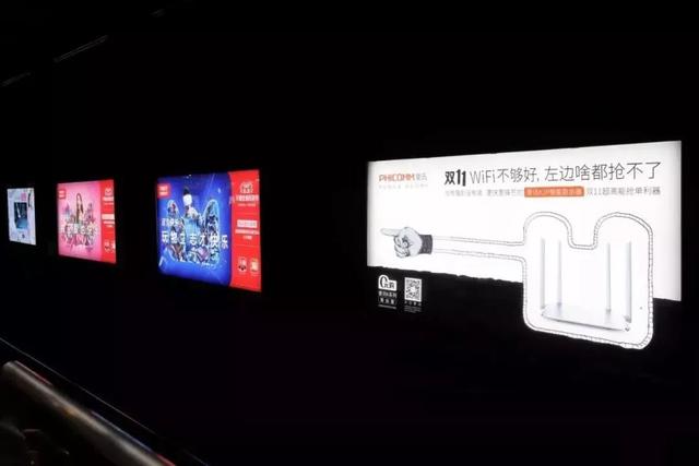 双11期间,天猫承包了几乎所有热门app的开屏和线下灯箱广告,而斐讯则充分利用了线下的位置优势。