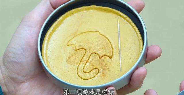 倒入油纸中,压平,用模具刻出圆形、方形、星形、伞形等。参与者能在规定时间内完整挖出中间图案,即成功通关,输者被枪毙。