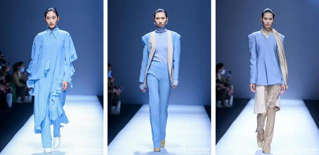 “如何更好地平衡艺术性和商业化,是我这两季作品的核心话题。通过不断的研究,我可以更好的将一些认知和感知的无形的东西转化为艺术化、时尚化的商业产品。在AW21系列中,我把色彩、面料、廓形作为非线性的目标变量,把流行趋势和大环境作为决策变量,通过非线性的黄金分割和切线得到最优的设计,以满足穿着者的最佳体验和状态,同时兼顾商业价值。SS22系列,从活跃的年轻群体思维出发,展现基于科技生活的年轻人生活方式,运用环保材料和立体裁剪,打造oversize解构成衣的效果,强调舒适性和视觉冲击力。”
