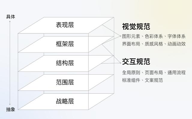 从用户体验要素来看,视觉主要在“表现层”和“框架层”进行规范统一,主要包括形状、色彩、人物、结构、质量、运动六个层次。