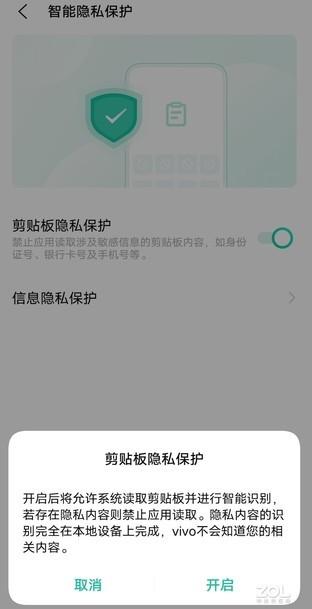 值得注意的是,vivo X70 Pro在隐私保护方面也有自己的解决方案。平时经常会遇到涉及侵犯隐私的情况,比如App读取剪贴板,而vivo X70 Pro可以让App无法获取身份证号、银行卡号、验证码等个人信息。小刚开启智能隐私保护功能后的剪贴板和短信。同时这些操作都是在本地完成的,全方位保护我们的隐私。