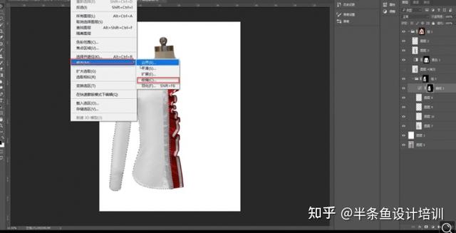 十二、选择衣服,点击【选择】、【修改】、【缩小】,让衣服看起来更柔和。
