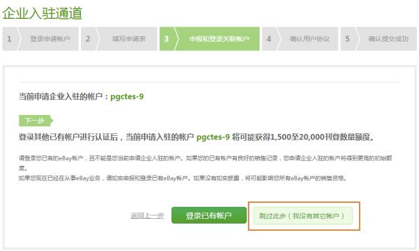 3)申报并登录关联账户:请使用卖家已有的其他易贝账户登录。