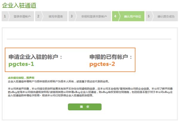 转到“确认用户协议”页面。在这个页面,再次确认卖家的“申请企业居留的账号”是否正确。阅读声明后,点击“提交”按钮。