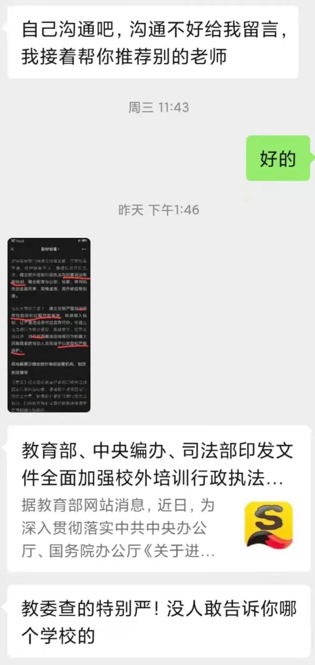 西城区教委:借此机会诈骗的案例很多,有一部分不一定是学校老师。我们跟学校开会强调,包括下发文件,在职教师不允许补课,不允许带薪上课,也有相关的制度和办法。我们自己也收到了很多这样的信息,但并不都是真的,我们这里也没有权限去查这些信息。他不这样签家教,更不好查,像小区里藏着的那种。我们学校也很无奈。现在学校真的很严格。