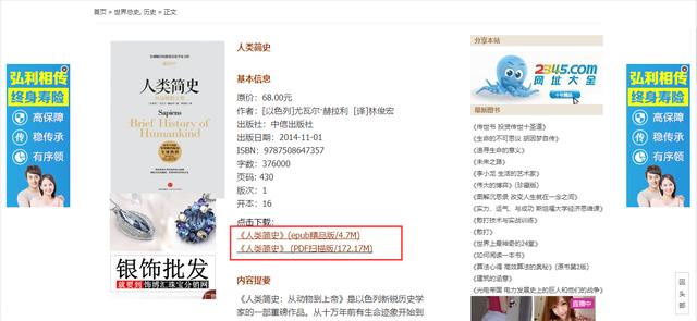 这个网站有各种各样的书,你想要的书一般都能在这里找到。比如我在搜索栏输入人类简史,会出现如下: