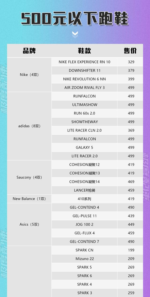 本期我们瞄准跑者最关心的价格,瞄准500元以下各运动品牌的跑鞋,看看都有哪些!