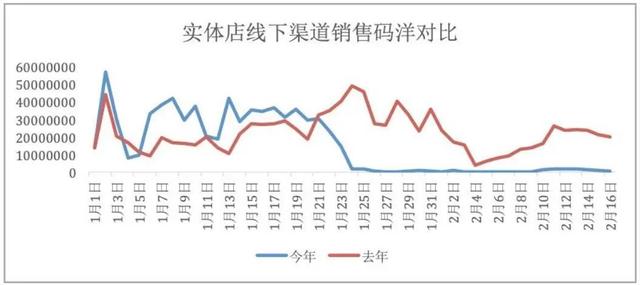 2020年1月1日至2月16日,金钟易云大数据平台监测实体书店线下渠道销售码对比。