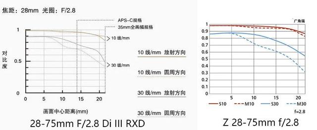 龙腾28-75mm F/2.8 Di III RXD与尼康Z 28-75mm f/2.8 MTF对比