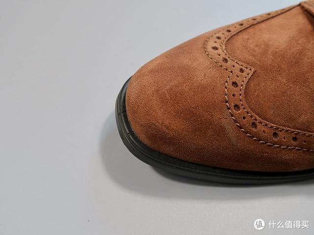 这是ECCO买的第一双鞋。总体来说,鞋子比较轻,鞋底也不难踩。鞋面用牛皮磨毛,用布洛克雕花让它看起来更休闲,PU材质的鞋底轻薄柔软,采用ECCO自己震点的缓震技术增加鞋底的缓震性能,所以在实际穿着过程中没有明显的感觉,当然我穿Nike Air Max运动鞋也不会有明显的感觉。鞋面和鞋底通过缝线更牢固地连接在一起,但你要么看到缝线,要么看到固特异工艺!