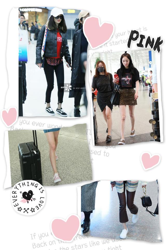 有人说:“杨幂每个机场都穿过Vans。”豹纹,小白,少女粉,酷黑...各种同类型不同颜色的vans系带休闲鞋,无论是搭配短裙、铅笔裤还是legging,她的脚大部分都是一双Vans。这种标准投放效果和直接背书一样有效,其说服力在于安利的日常示范。对于粉丝来说,拥有“同款爱豆”似乎是拉近与偶像距离的一种方式。