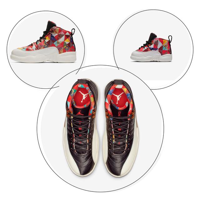 在复刻系列中,耐克推出了新版AIR JORDAN12,其内衬采用了来自中国传统的“百佳衣”拼贴图案,鞋面下暗藏玄机:面料延伸缝被剪断,另一个“百佳衣”内衬随即映入眼帘。这款鞋还推出了儿童和幼儿鞋码的亲子版,因为“一个家庭最重要的是整洁!”
